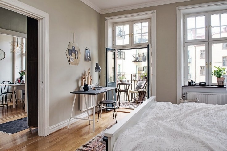 Nos ponemos un poco románticos porque la casa que vamos a ver hoy viene con muchos detalles de este estilo. Aunque la base de la decoración de este apartamento se puede decir que es nórdica, tiene mucha inspiración romántica. Si os fijáis hay muchos muebles y complementos decorativos con claro diseño escandinavo pero se mezclan con otros de corte más cottage proporcionando a cada estancia un ambiente más cálido. El color gris que han selccionado para las paredes de la casa mezclado con los detalles en blanco, le dan mucho más ese carácter calmado y atemporal.