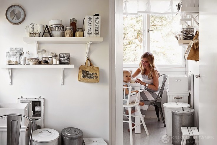 Entre lo nórdico y lo romántico una decoración basada en los tonos neutros que como siempre transmiten serenidad. Para romper la monocromía su dueña ha introducido cestos y algo de madera que además de ser tan prácticos dan calidez y quedan tan bonitos entre el blanco y el negro.
