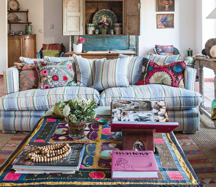 Una de las casas mas bonitas que he visto. los cojines son unicos y todo repleto de detalles con mucho color.