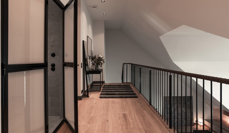 La presencia del color negro por toda la casa a juego con los suelos de madera, resulta una mezcla de lo más sofisticada. Es genial por donde se mire o por lo menos yo no le encuentro nada que no me guste y aunque la veamos tan espectacular y en España no tengamos esos lagos o abunden estos edificios, una decoración así puede estar en cualquier casa.